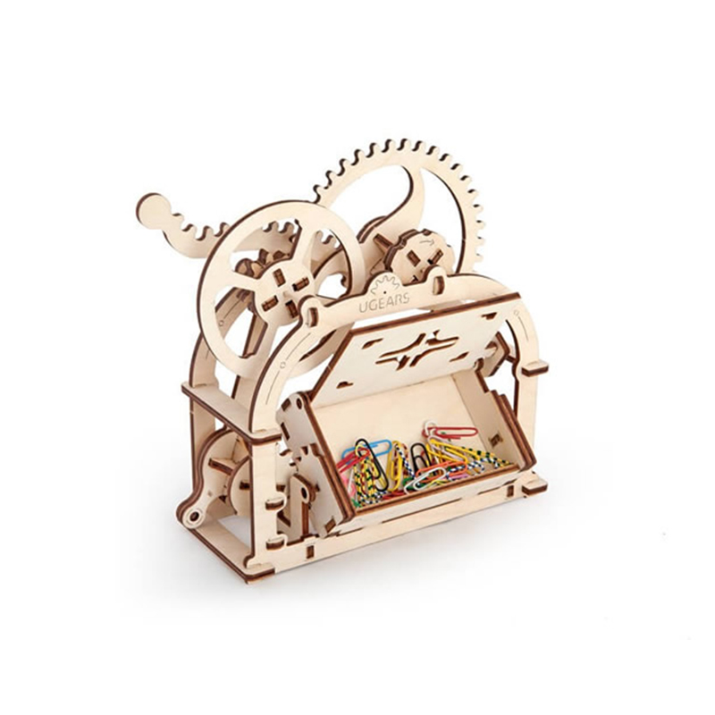 A: 全部采用木质材料,是UGEARS的风格,木料有一定的延展性和韧性,很适合榫卯结构,能做到不使用胶水但又相当牢固。而且在很多型号,牙签充当了不同的角色,还需要截断不同的长度。