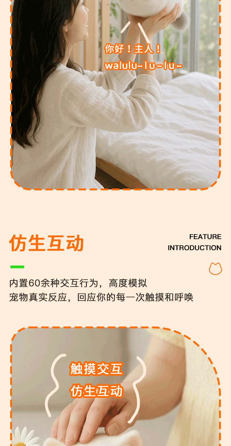 60种交互动作丨高情绪感知丨小程序联动 编号:0100003653 统计:1242人已看过 麦极价:¥599 品牌地: 产地:中国 规格:200x100x100mm 重量:0.50 kg. 颜色: