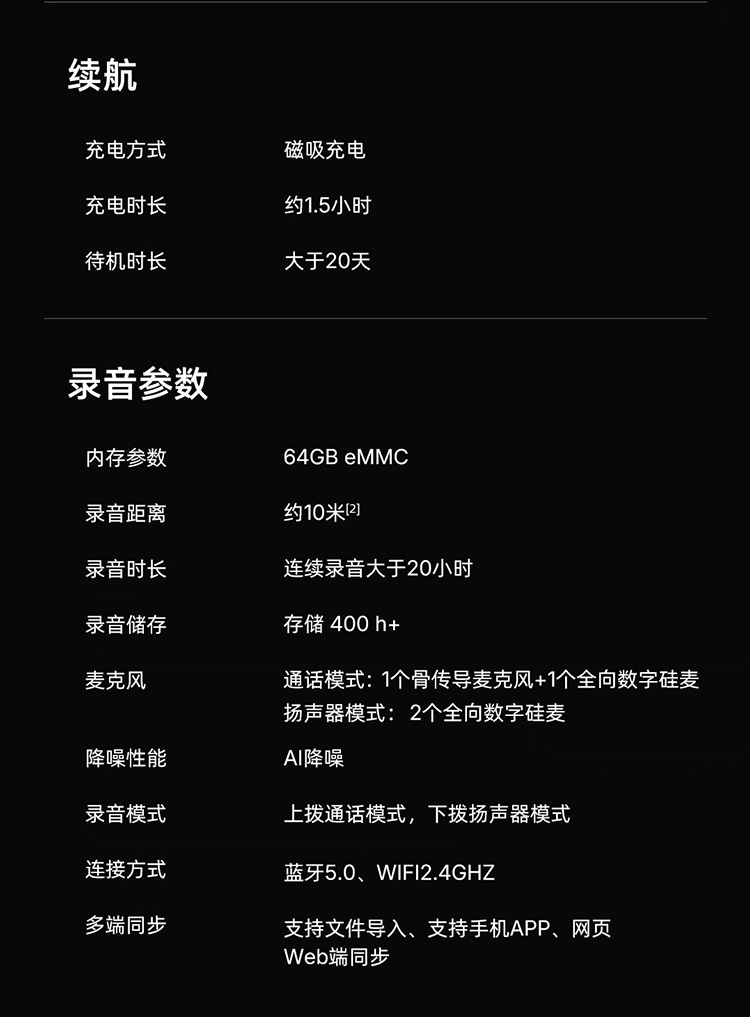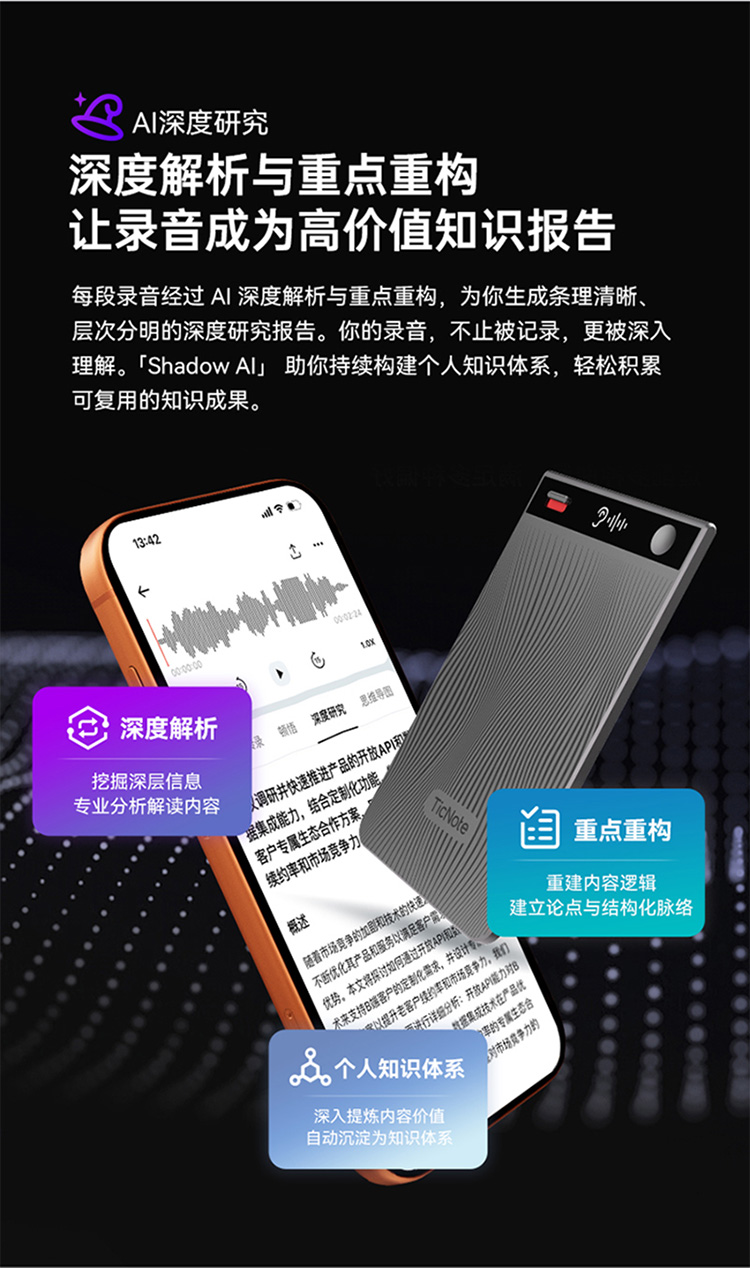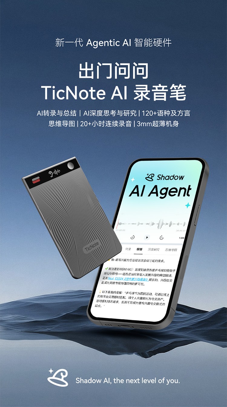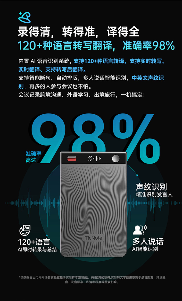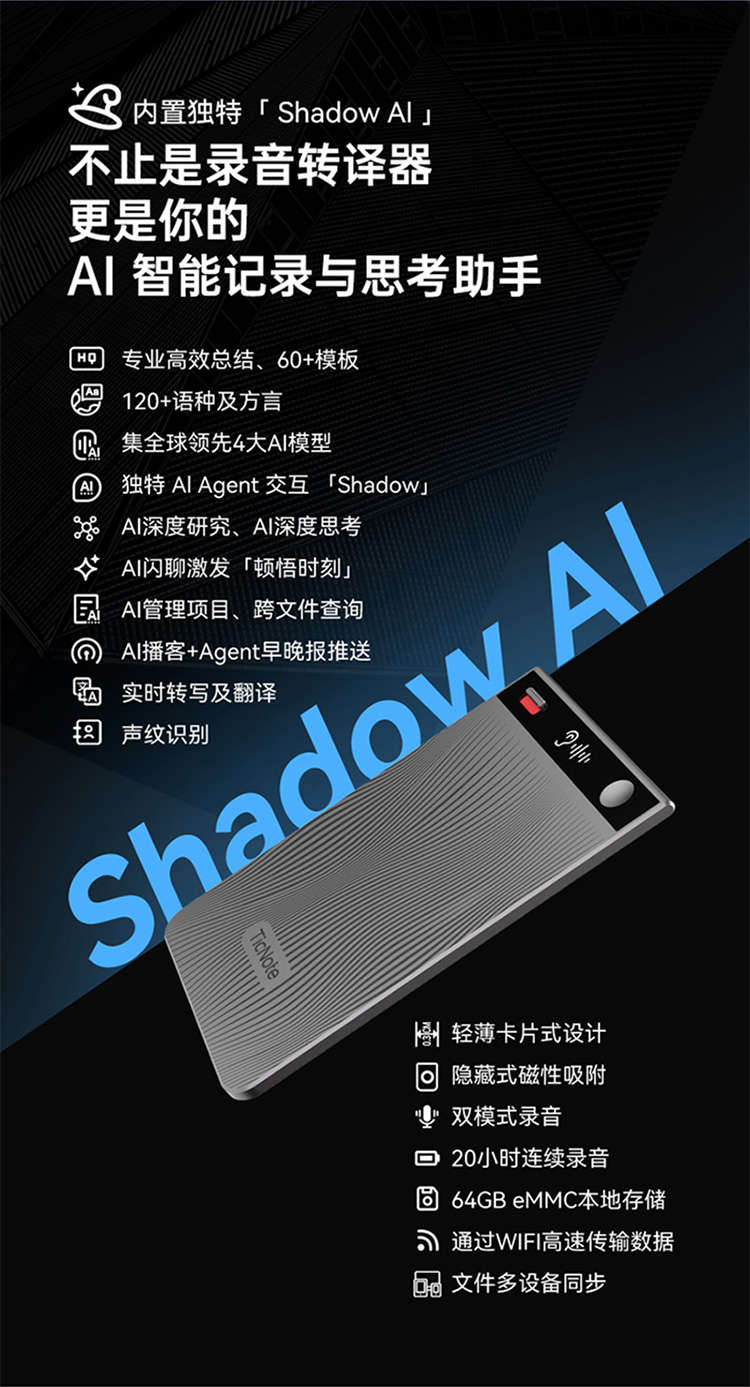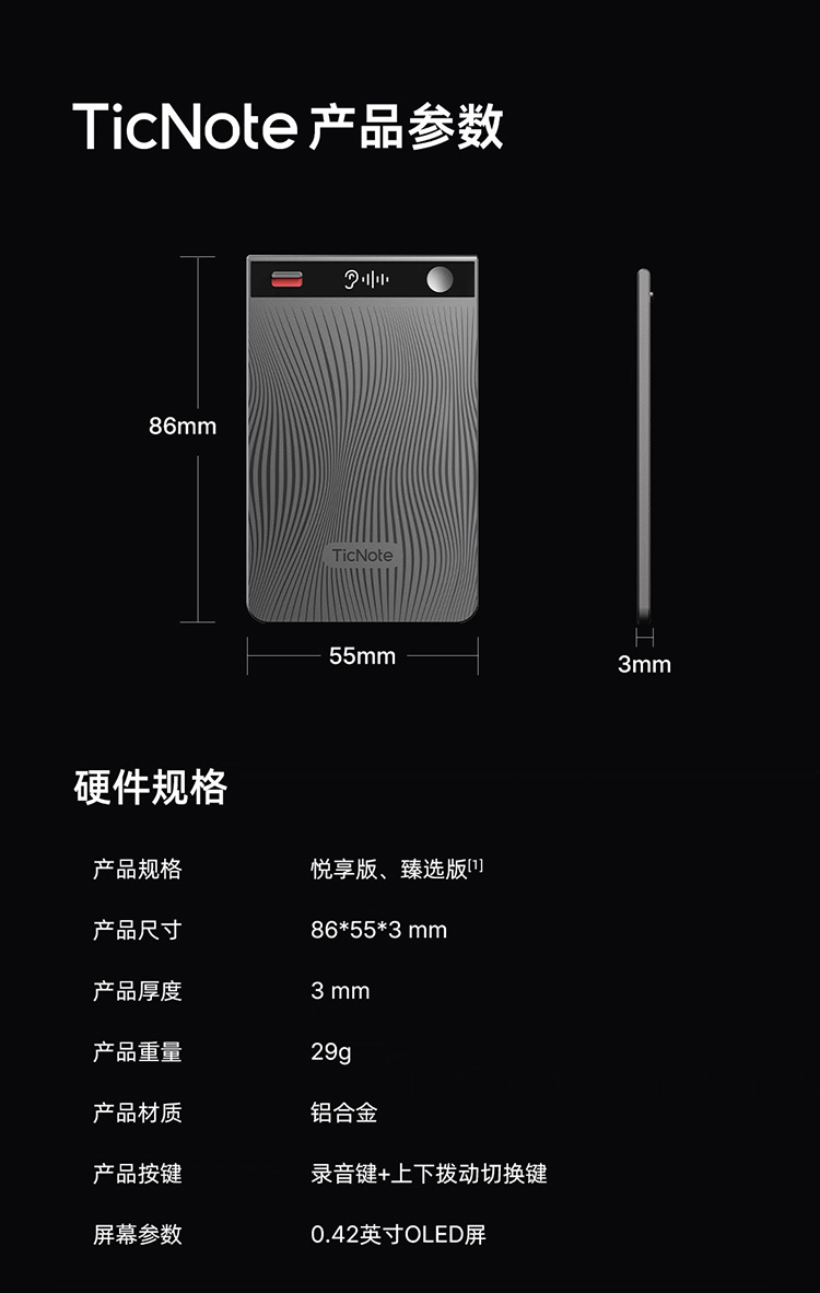 AI转录与总结丨120+语种及方言丨3mm超薄机身